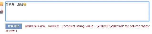 不支持emoji表情存储……数据库存储设置的字符集不支持这个字符。
