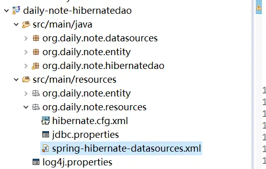 下图为daily-note-hibernatedao,其中配置文件均放在org.daily.note.resources包中。
