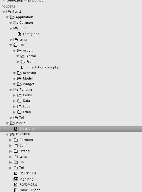 App\Lib\Action\Home\IndexAction.class.php通过配置文件,默认加载的是Home但是你没有Home文件夹如果只是加载Admin IndexAction.class.php貌似又不在Admin下面tpl是模板public是公共资源文件谢谢解答!呃其实不是不是这个问题,这个图片是以前的截错图了,home我已改成Front了,问题其实出在model里,十分感谢,找了两天没找到。function_404($msg='',$url=''){