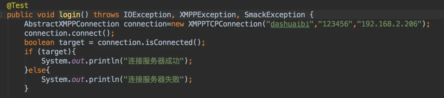 最近在学习如何实用openfire来做一个消息推送服务器。学习smack的时候按照官方文档写了一个test。