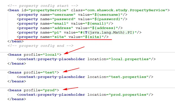 我想在一个bean中注入一个属性,这个属性在开发、生产、测试上值不一样,因此使用了spring profile,如下: