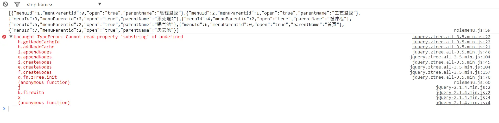 var zNodes =[{"menuId":1,"menuParentid":0,"open":"false","parentName":"远程监控"},