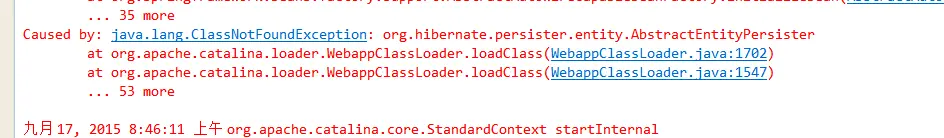 不是ClassNotFoundException吗?。。很基础的Exception,缺少了class文件。。肯定是少了jar包,你顺着那个类名,将那个jar包添加上来,就解决问题了。。