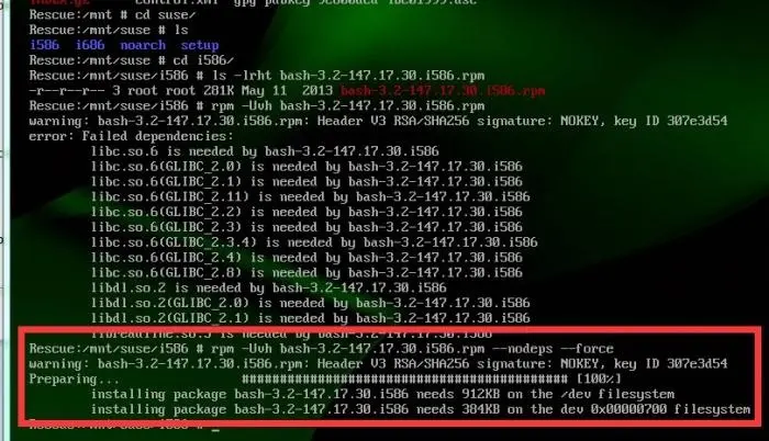 rpm -Uvh bash-4.2-68.4.1.x86_64.rpm --nodeps --force