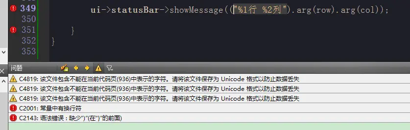 是在编辑->选择编码那里选择UTF8么??是的话,我本来就是UTF8了。。。。怎么会这样?回复<aclass='referer'target='_blank'>@hao_Feng:其一,如果编码是UTF8,警告就会没了、、用Qstring2001错误就会没了,最后一个错误,不清楚、、不行啊,编码是UTF-8QString那个方法也不行另外文件编码需要UTF-8