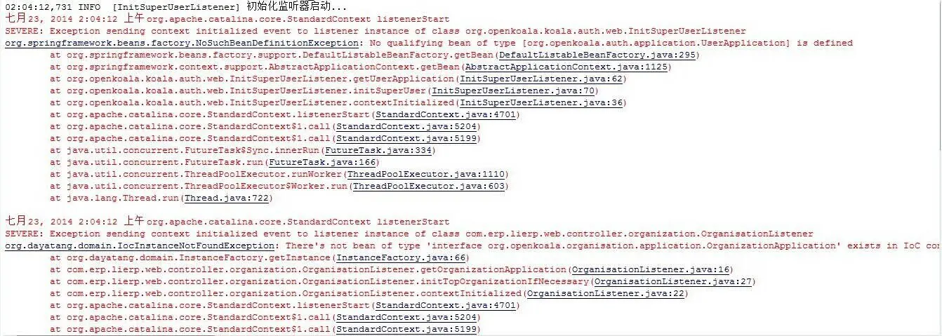 项目始终报错,jar都发布到lib下了,class也都编译了,任何代码都没添加,只添加了权限子系统、组织子系统、通用查询子系统,就是报错,跑不起来