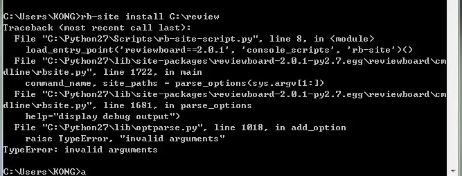 我的系统是win7 64位的,想安装reviewboard代码审查工具,根据网上的安装文档安装了apache2.2 python2.7 mysql等工具,当执行到rb-site install c:\review 是报了raise TypeError, "invalid arguments"这个错误。没接触过python,这个问题困扰了我两天了,请大家帮忙解决下。