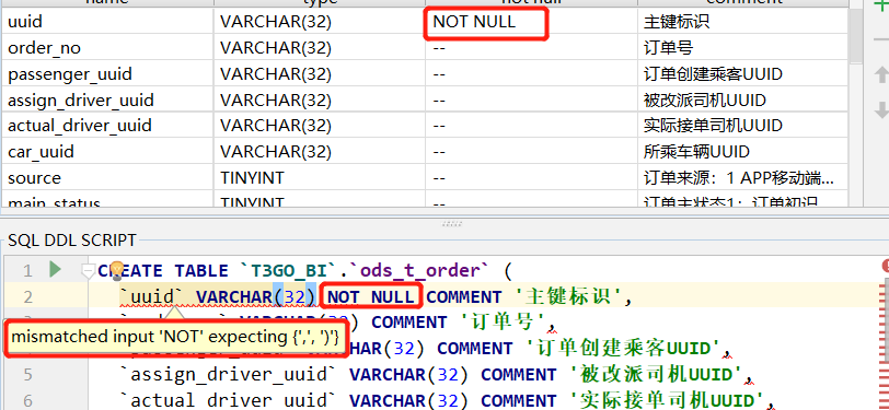 使用maxcompute studio创建表,当选择not null时候,报错: