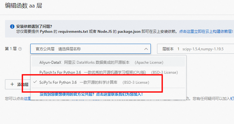 • 函数配置中挂载这个公共层就可以了 有numpy模块