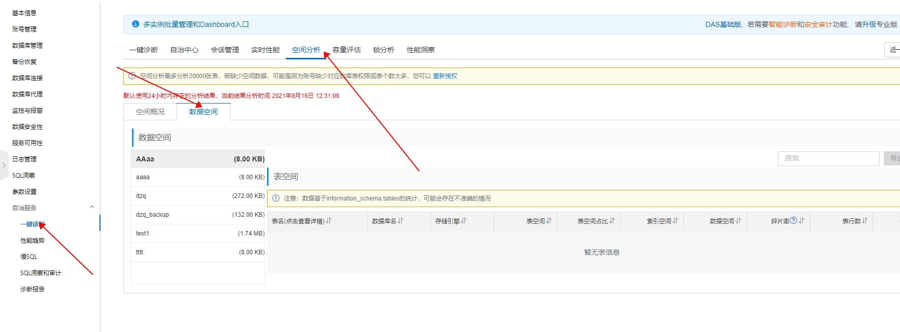 目前RDS没有办法看到数据表每天的数据增长情况,但是可以在控制台查看每个数据表的空间情况。