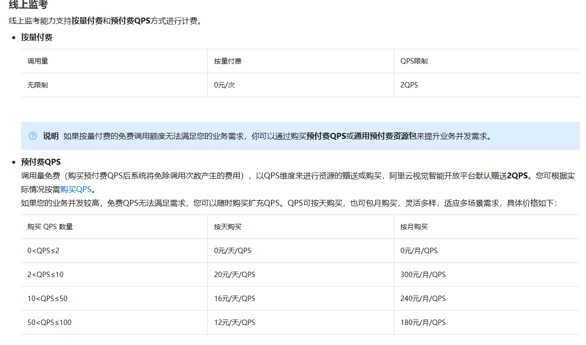 此外,阿里云视觉智能平台还提供了免费调用次数,每个自然月内的前2次调用是免费的,超出部分将会收取相应的费用。如果您需要更多的调用次数和更好的服务体验,可以根据自身需求选择相应的服务套餐,以获得更多的调用次数和更好的服务质量。