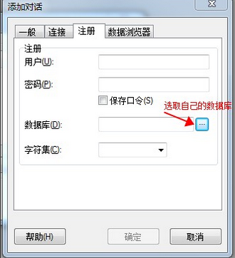然后,点击注册选项卡,在用户和密码处输入申请数据库时填写的数据库用户名和密码后,点击下图箭头所示的小方框,就可以选取要连接的数据库最后,弹出数据库登录的对话框时,请继续点击确定按钮。便可链接并使用ECS数据库。