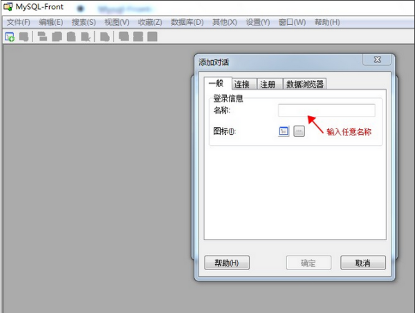 连接阿里云ECS服务器创建的数据库: 户可以使用不同的数据库客户端或命令行语句访问ECS数据库: 客户端:Mysql-Front 首先,启动Mysql-Front后会有一个添加对话的对话框弹出,在名称处可输入任意名称。
