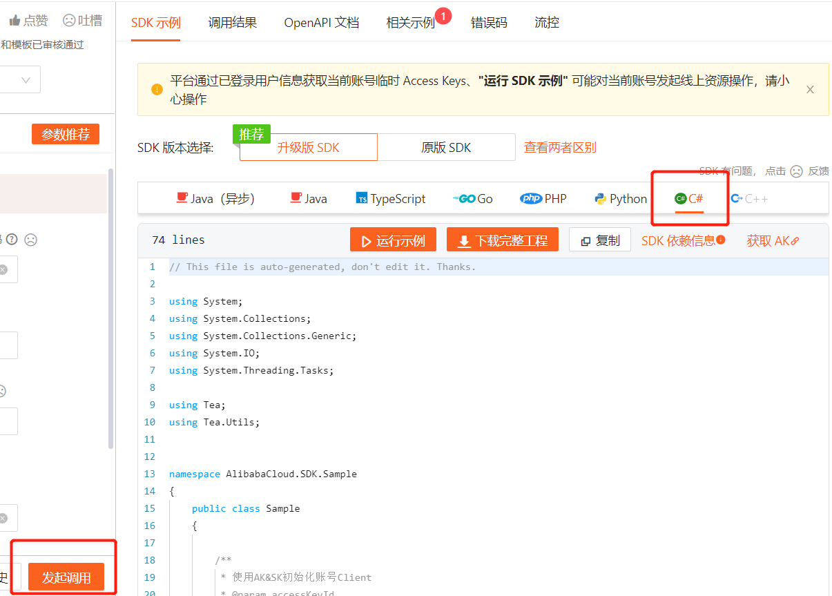 参考https://next.api.aliyun.com/api-tools/sdk/Dysmsapi?version=2017-05-25&language=csharp-tea这里的C#demo在发短信时报以下错误