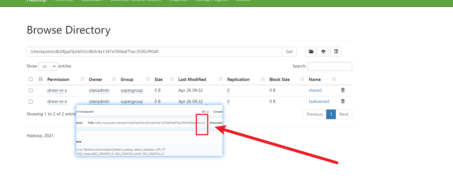 跑了20分钟后 completed的啦,很纳闷 我又没有设置相关的,为什么20分钟后突然触发了20个检查点? 我这作业cancel job然后通过检查点重启,在hdfs却找不到这个文件后缀
