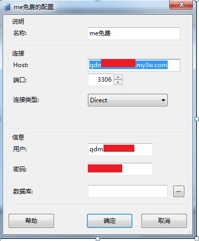 Host:请填写数据库连接地址。例如qdmxxxxxxxx.my3w.com