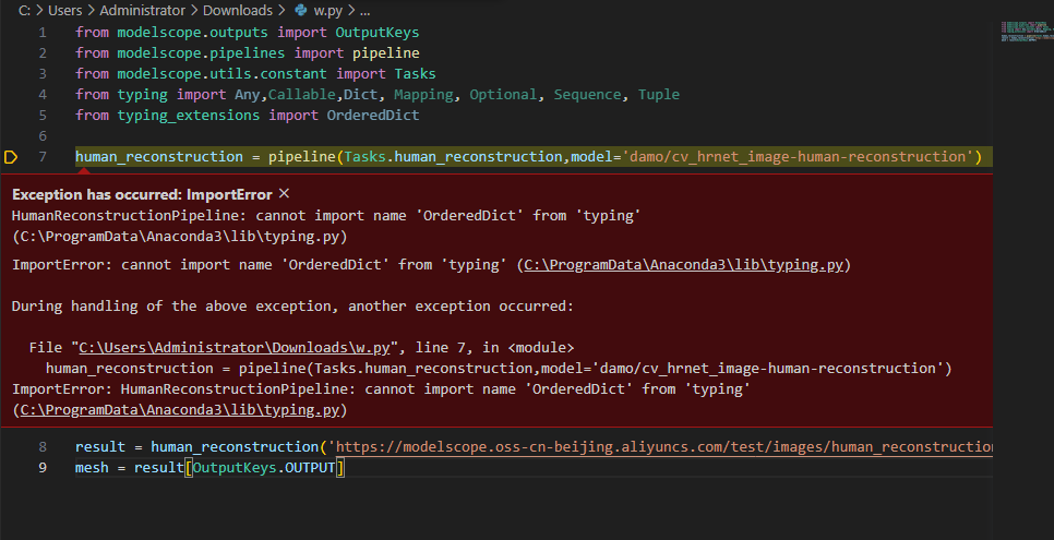 1. Python版本不兼容:typing 模块中的 OrderedDict 类在较旧的Python版本中可能不存在。请确保您正在使用的Python版本与所需的模块和库兼容。如果您的Python版本太旧,可以考虑升级到较新的版本。