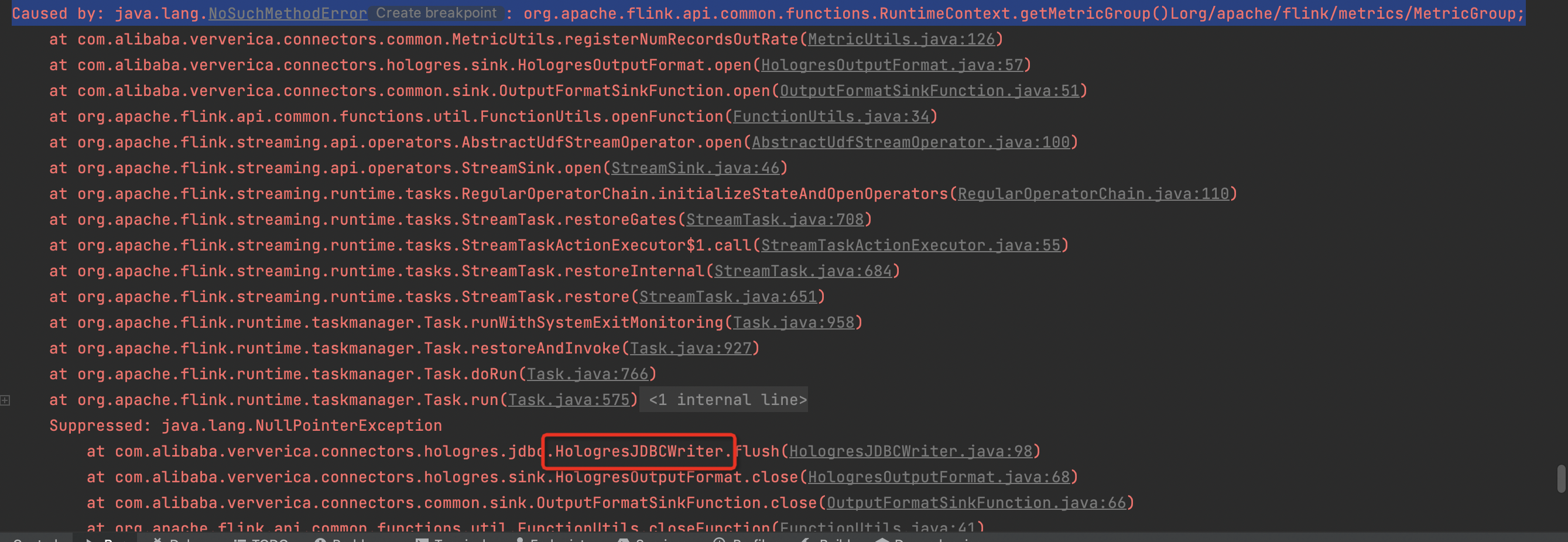flink cdc中我在sink 那里添加 holoJDBCWriter 报错了,我看报找不到的类在 flink-core 里能找到,什么原因?感觉像是jar包冲突了。