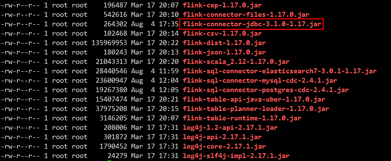 Flink 1.17.0推荐使用flink-jdbc_2.12-1.17.0.jar连接器。