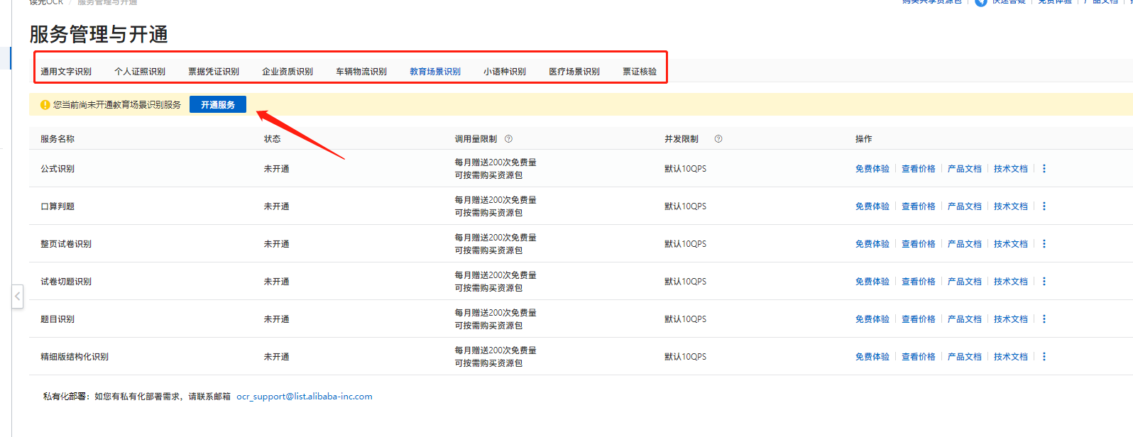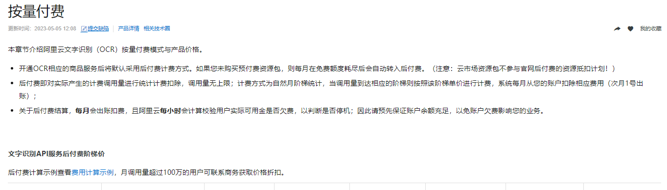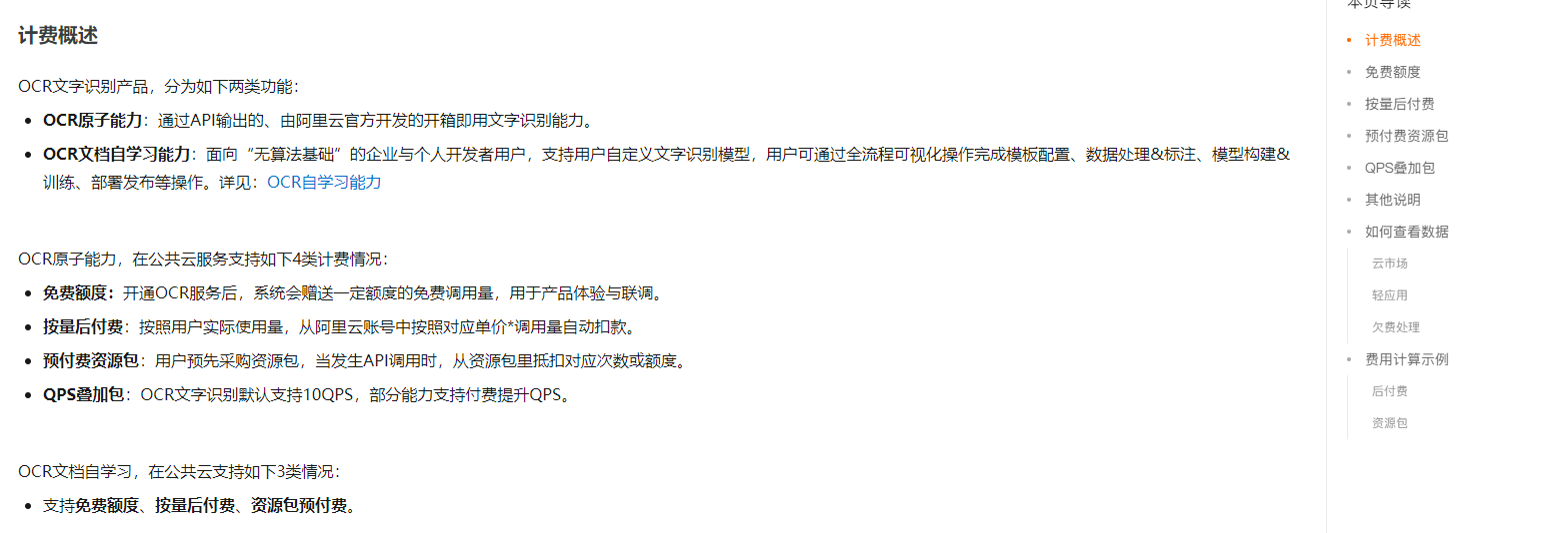 您好,文字识别OCR不同场景支持不同的计费规则,通分为OCR原子能力和OCR文档自学习能力计费