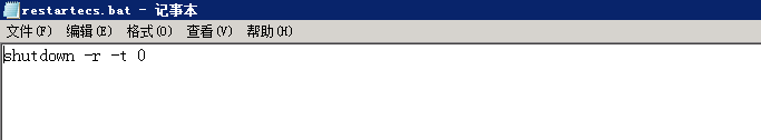 1.新建一个文本文件,写入 shutdown -r -t 0,将文件后缀改为bat,文件可以放在服务器上的任意位置