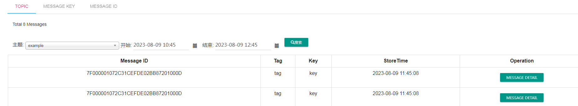 但是通过messagekey 进行反查的话就查不到重复消息了。