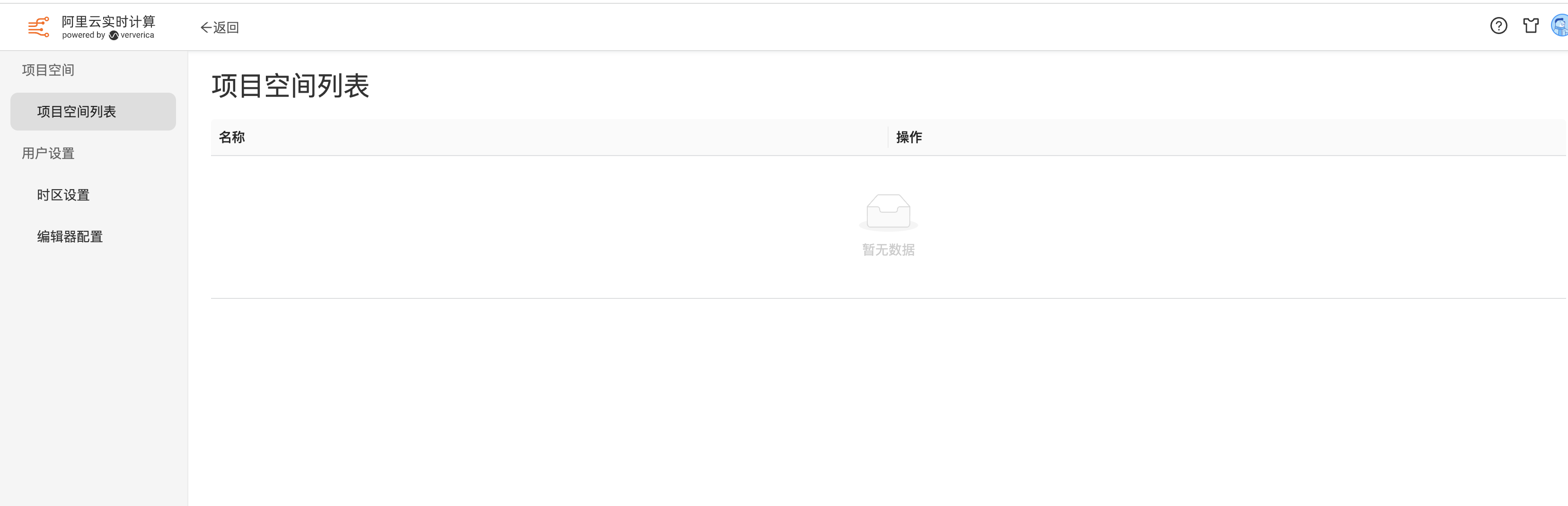 您没有任何创建的MaxCompute项目空间。您可以尝试创建一个新的MaxCompute项目空间,然后再次查看列表。