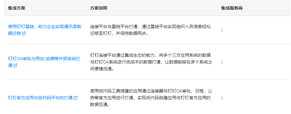 钉钉连接平台为解决企业在使用钉钉不同系统间数据孤岛的问题,为企业提供了各种连接场景、教程和示例的连接平台解决方案,满足企业对多场景、多能力、多方式的定制需求,通过连接器帮助企业与企业之间、企业与应用之间、应用于应用之间简单高效的实现钉钉、企业内部系统、知名厂商系统(金蝶、用友、SAP等)、钉钉第三方企业应用之间数据互通和集成。