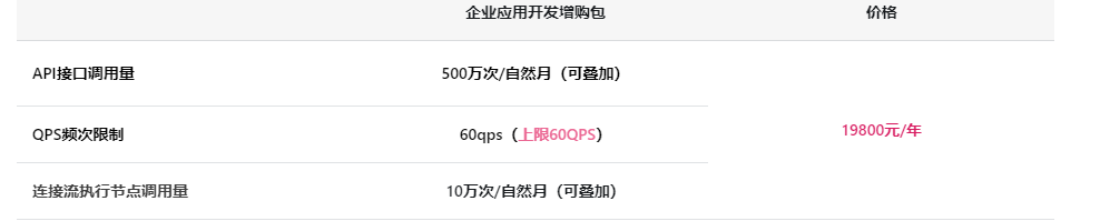 付费接口:某些高级功能或特定需求可能需要额外付费。例如,使用一些高级的企业管理能力、人工智能技术、数据分析等功能时,可能会有相关的付费服务。