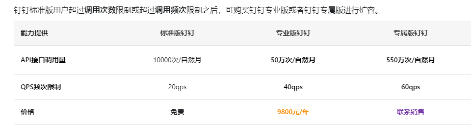 当使用钉钉专业版/钉钉专属版调用次数依然无法满足要求,可购买企业应用开发增购包提高用量。