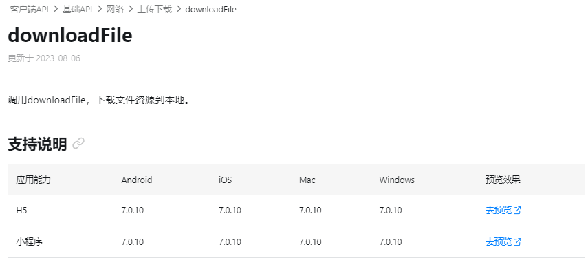 调用downloadFile,下载文件资源到本地。