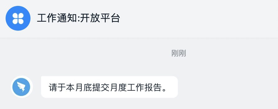 工作通知消息是以某个应用的名义推送到员工的工作通知消息,例如生日祝福、入职提醒等。可以发送文本、语音、链接等,消息类型和样例可参考消息类型与数据格式。