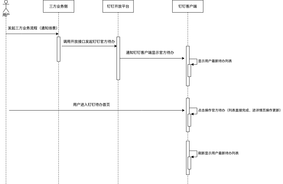 更多待办的信息,请移步至钉钉开放平台查看文档-》概述 - 钉钉开放平台 (dingtalk.com)