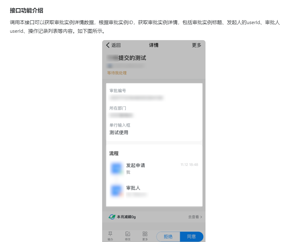 解析返回结果:接口调用成功后,解析返回的JSON数据,即可获得审批实例的节点信息。可以获取到每个节点的审批状态(同意/拒绝/未处理)、审批时间、审批人员等相关信息。