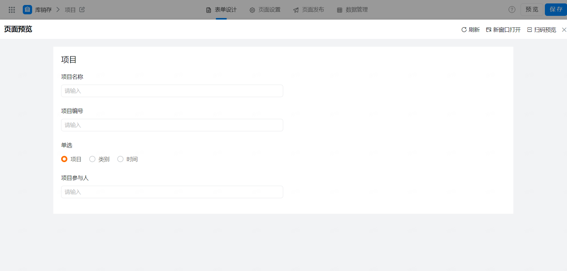 这个时候,页面只剩下三个单选按钮和被关联的组件了,其他的组件都已经被隐藏起来了。同理,选择类别会出现类别的字段,时间会出现时间的字段。