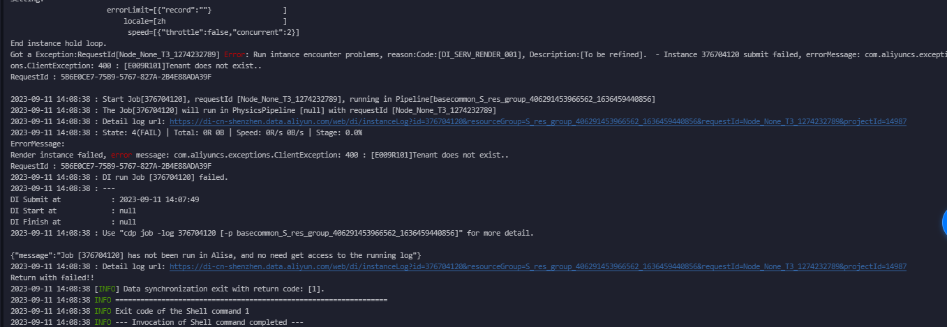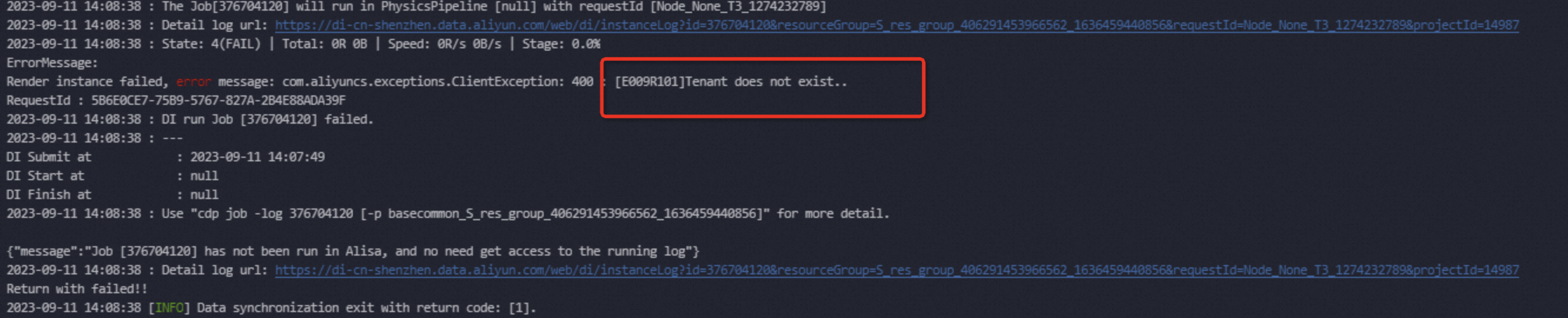 检查下租户是否存在, 除了这个任务以外 其他离线同步任务、或者odps sql任务是否能正常执行