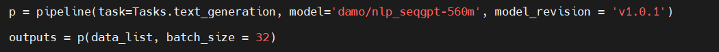 新模型==SeqGPTt: https://www.modelscope.cn/models/damo/nlp_seqgpt-560m/summary 是不是不支持加批处理的batch_size目前碰到的问题是这样de: >>在用pipline的时候 想使用批处理,于是传了batch_size参数。