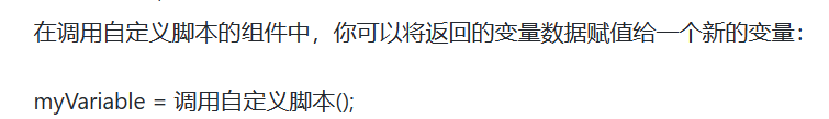 在上述代码中,rpa.get_variable()用于获取自定义脚本的返回值,"自定义脚本名称"是你的自定义脚本的名称。你需要确保你的自定义脚本已经正确地定义了返回值。