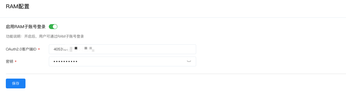 进入阿里云盘企业版,输入客户端ID和密钥信息。