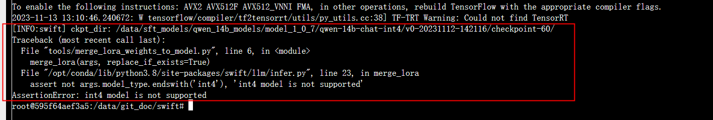 ModelScope中, int4模型不支持合并么