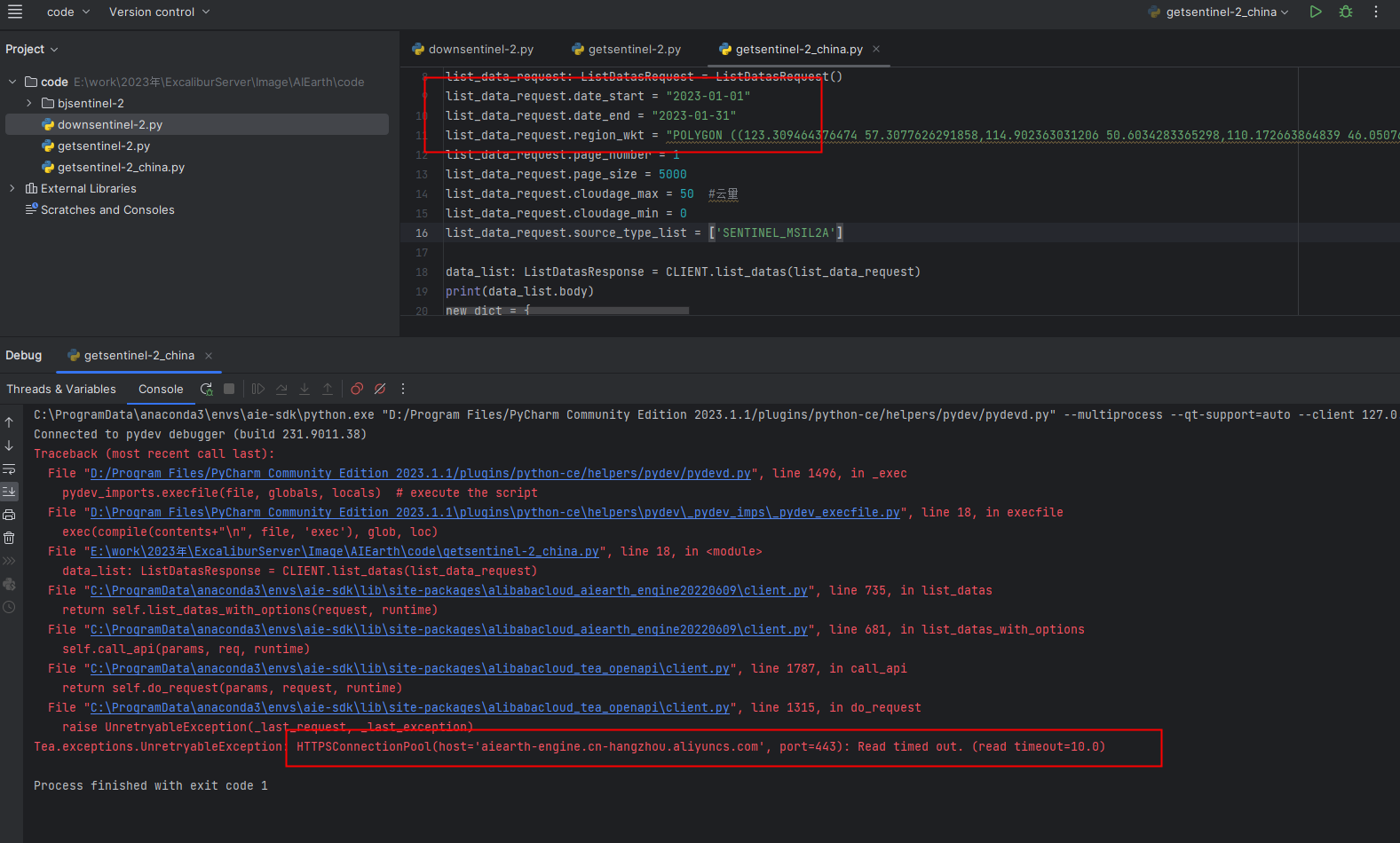 AI Earth全国的哨兵2号,请求一个月的数据直接就报超时了,大概什么原因呢?