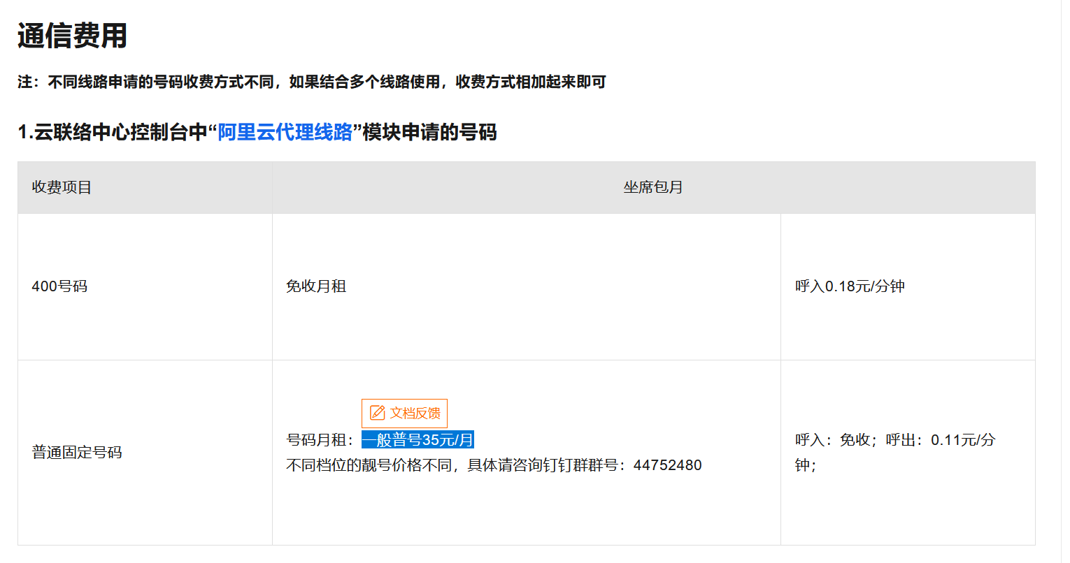 阿里云联络中心付费说明: