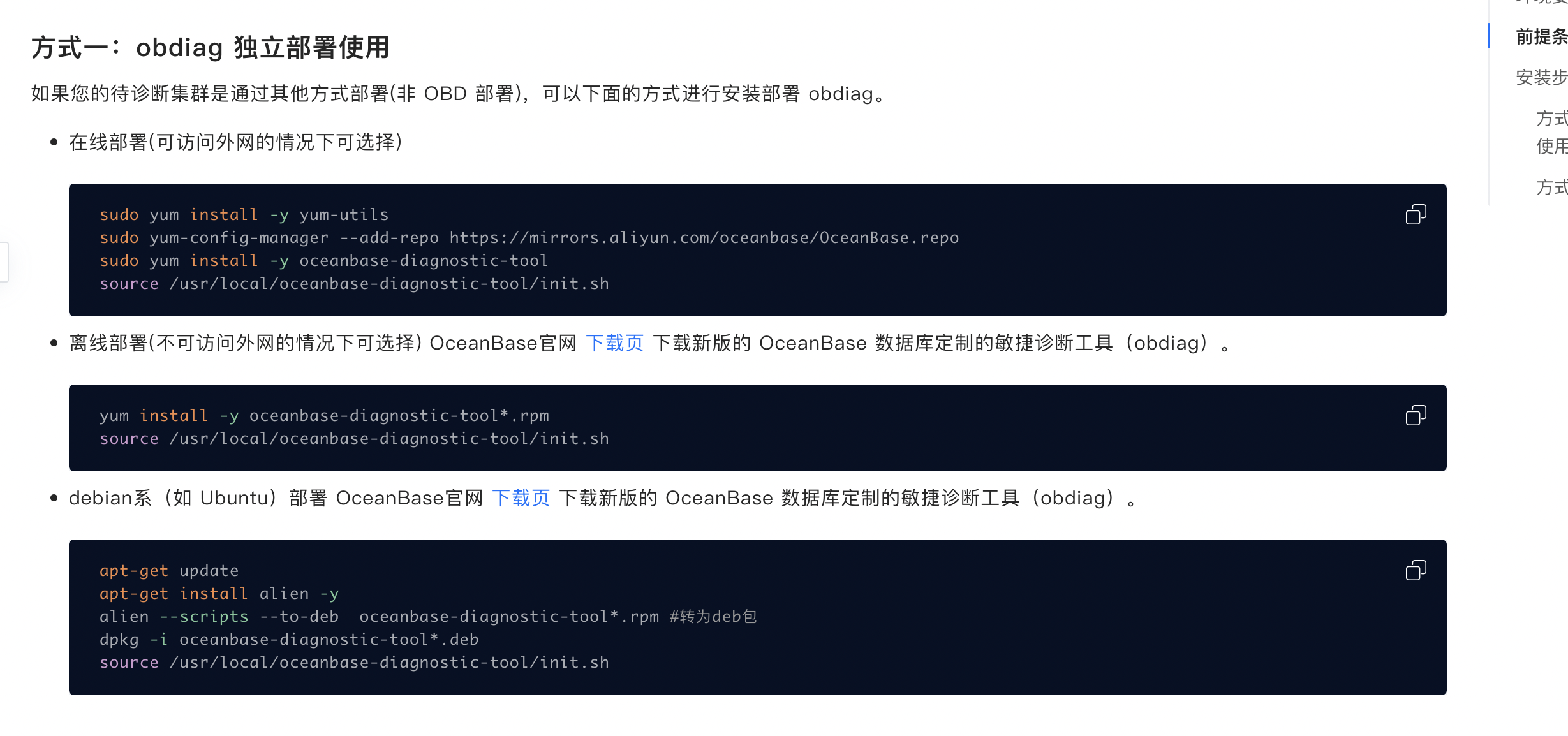 你这个用的啥版本的obdiag ,看着像是老版本。下个最新版本的obdiag 1.5.0,obd目前的版本还不能直接安装最新的obdiag 1.5.0 , 如果想要通过obd安装obdiag 需要安装obdiag 1.4.0。https://www.oceanbase.com/product/obdiag-rn/releaseNote#V1.5.0直接走单独使用obdiag的方式一来用就行,按照方案一执行就行