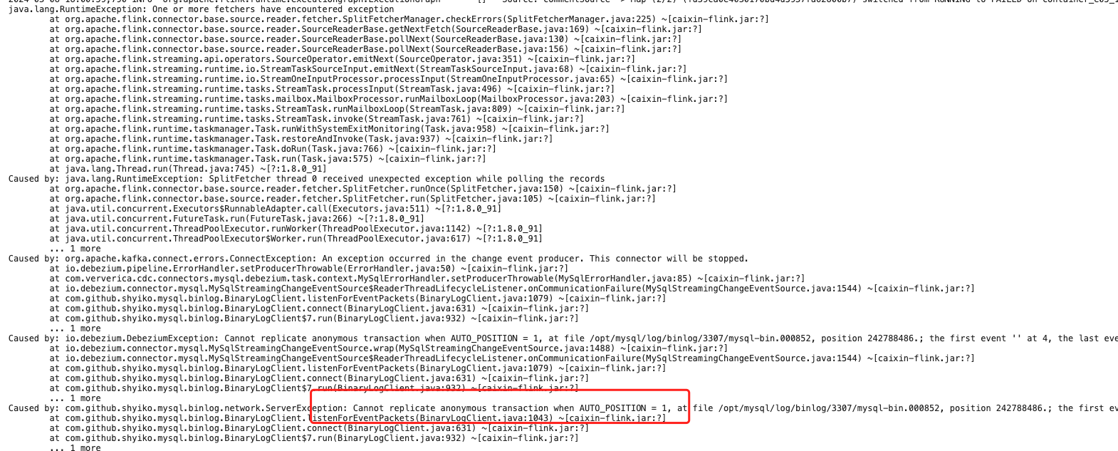 Flink CDC 里有见过这个问题的吗 生产用的好好的 突然挂了 重新发布作业也不行。