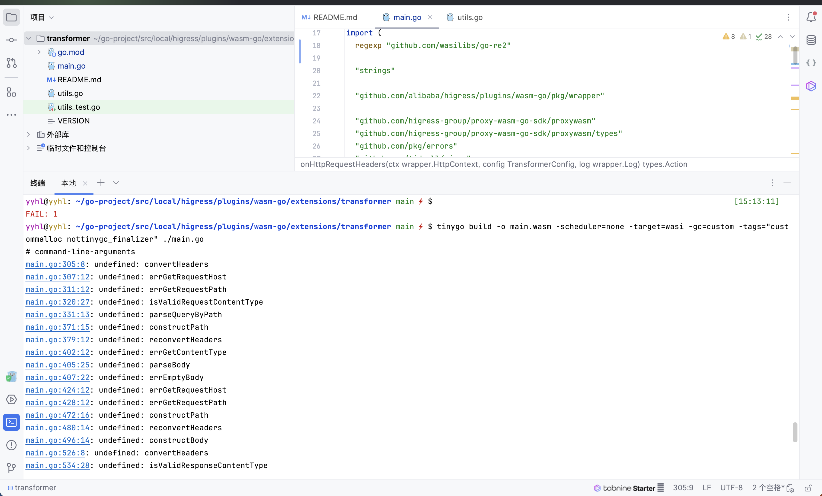 ./main.go 改成 ./。tinygo 编译需要指定目录。此回答整理自钉群“Higress 社区交流1群(2群: 30735012403)”