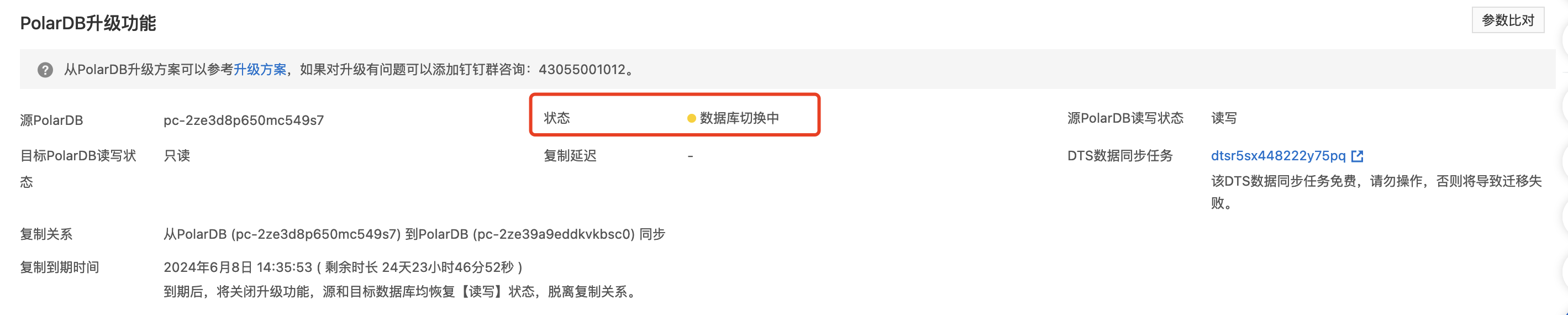 PolarDB这个带地址切换后,一直无法完成切换,有半个多小时了,为什么?