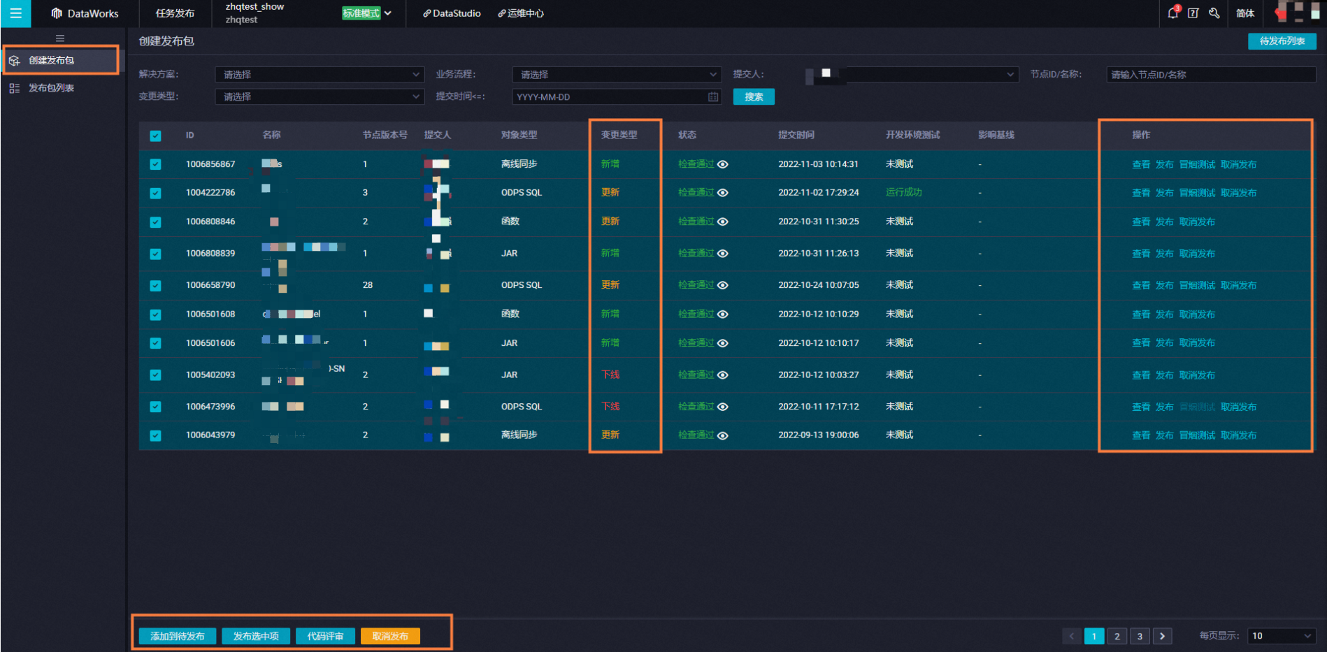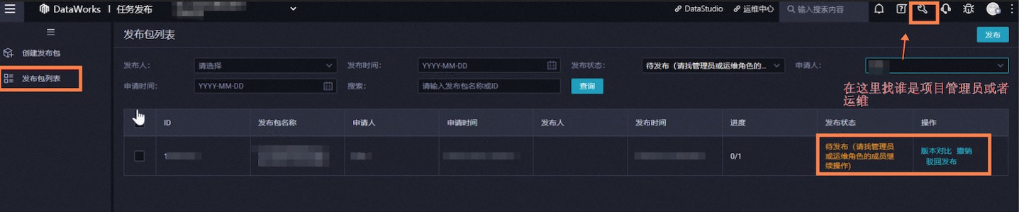 发布包处于待发布:可参考第2点,在界面右上角小扳手工作空间配置成员管理查看您当前项目下的角色是否有发布权限(运维/管理员)。