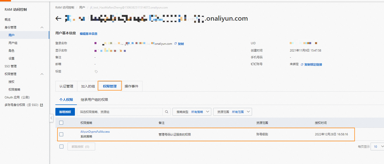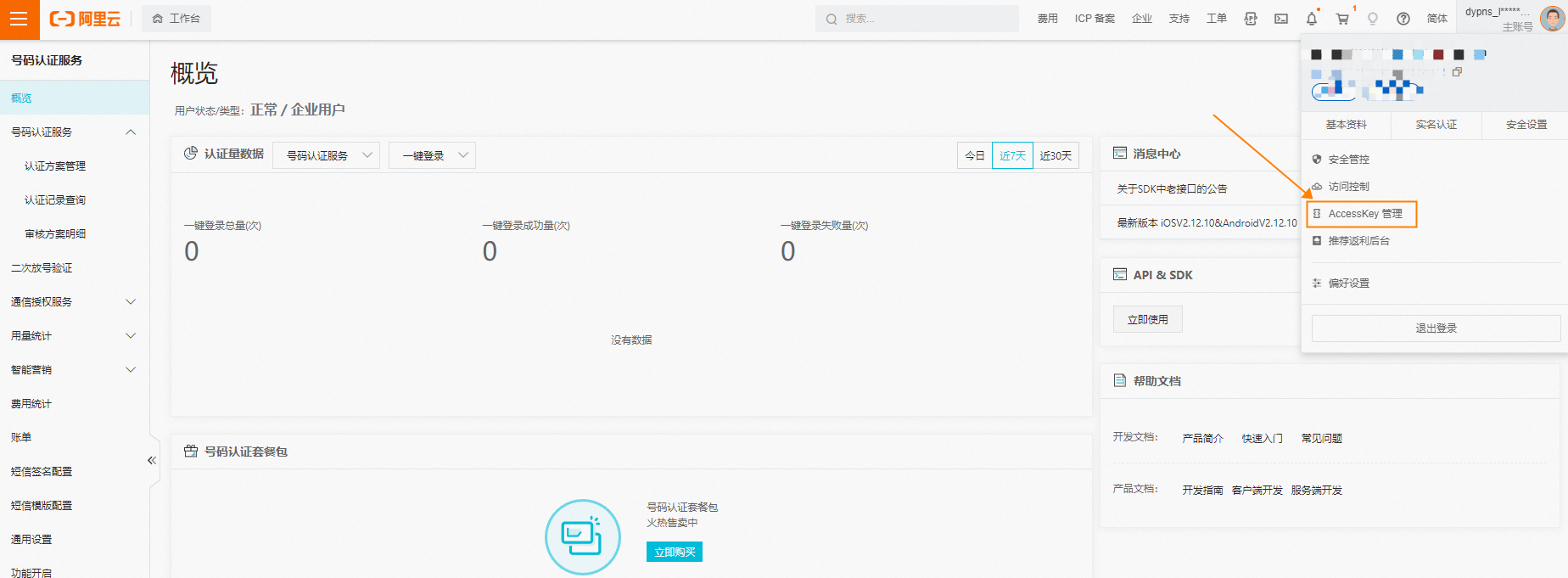 号码认证服务子账号权限如何配置