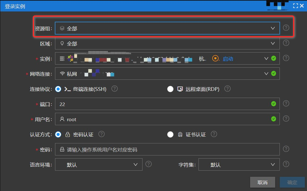 通过workbench登录是如图所示位置资源组选择 全部 ,然后再选择对应实例进行连接。
