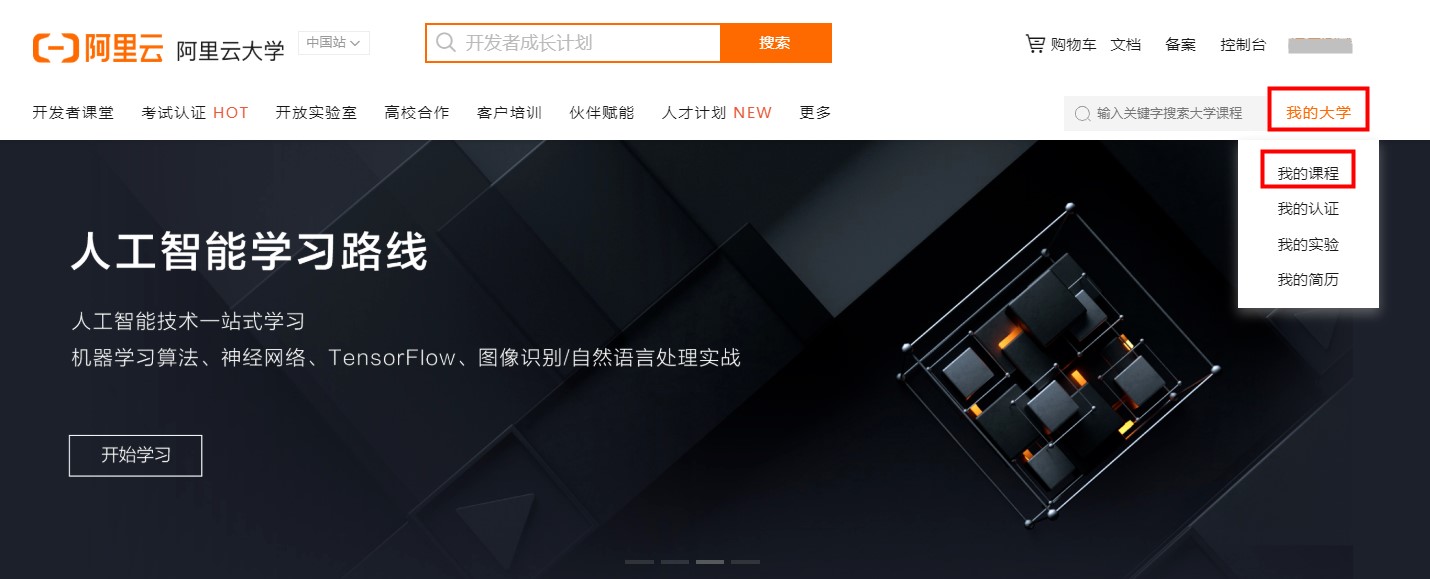 阿里云大学购买的课程在哪里看
